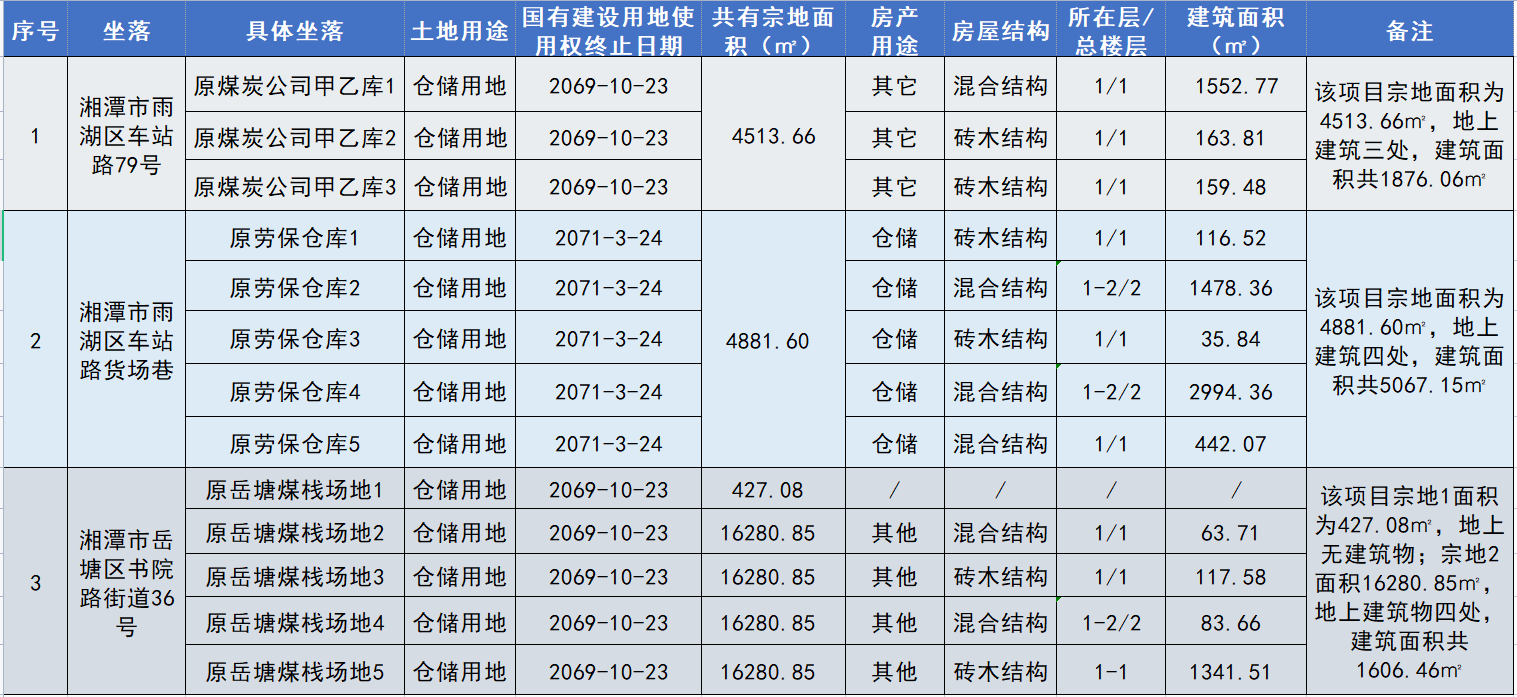 二、項目介紹 項目一:湘潭市雨湖區(qū)車站路79號原煤炭公司甲乙?guī)?/strong> 項目位于湘潭市雨湖區(qū)車站路79號(廣云路口),地處雨湖區(qū)中心城區(qū),毗鄰湘潭火車站,位于基建營核心商圈,有產權的房屋面積共1876.06㎡,宗地面積4513.66㎡,工業(yè)倉儲用地,國有出讓性質。