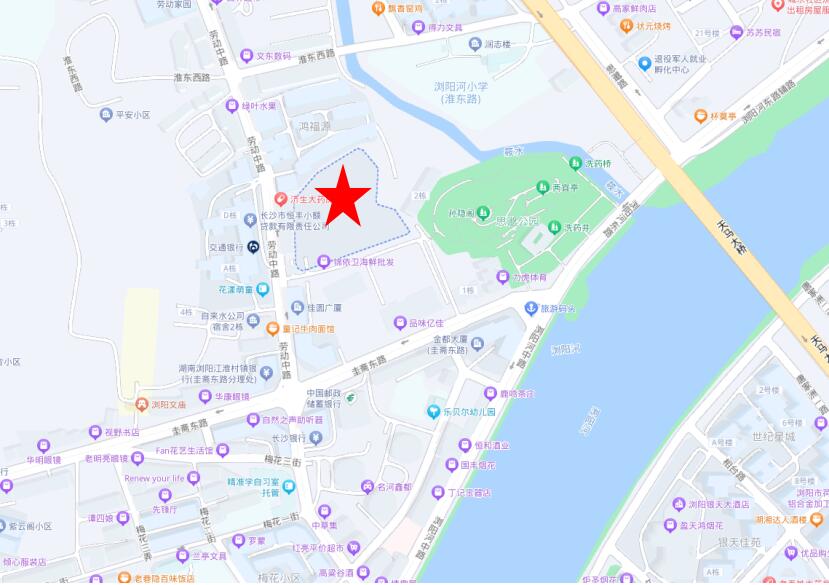 項(xiàng)目位于瀏陽核心地段,百年圭齋路與勞動(dòng)路的交匯處,南臨瀏陽河和天馬山,東靠思邈公園以及瀏陽河風(fēng)光帶,具體位置如圖所示(紅星標(biāo)注位置):