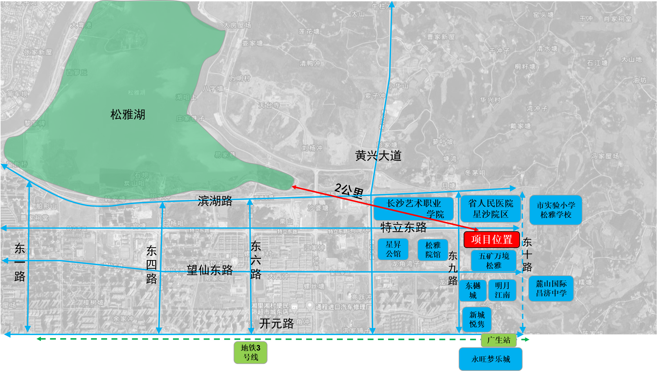 區(qū)位優(yōu)勢:項目北面緊鄰湖南省人民醫(yī)院星沙院區(qū),湖南省人民醫(yī)院星沙院區(qū)作為縣域頂尖醫(yī)療資源核心,匯聚大量人流量、醫(yī)療需求及專業(yè)資源,為健康服務(wù)產(chǎn)業(yè)發(fā)展提供絕佳條件。項目為片區(qū)醫(yī)療健康產(chǎn)業(yè)提供重要載體及公共服務(wù)配套,有效助力全球研發(fā)中心城市建設(shè)。項目周邊有五礦萬境松雅、星昇公館、松雅苑等樓盤,以及湖南藝術(shù)職業(yè)學(xué)院、長沙市實驗小學(xué)松雅學(xué)校、麓山國際昌濟中學(xué)。人流量大,消費潛力巨大,2#棟將為項目公寓及商業(yè)配套運營提供有力支撐。