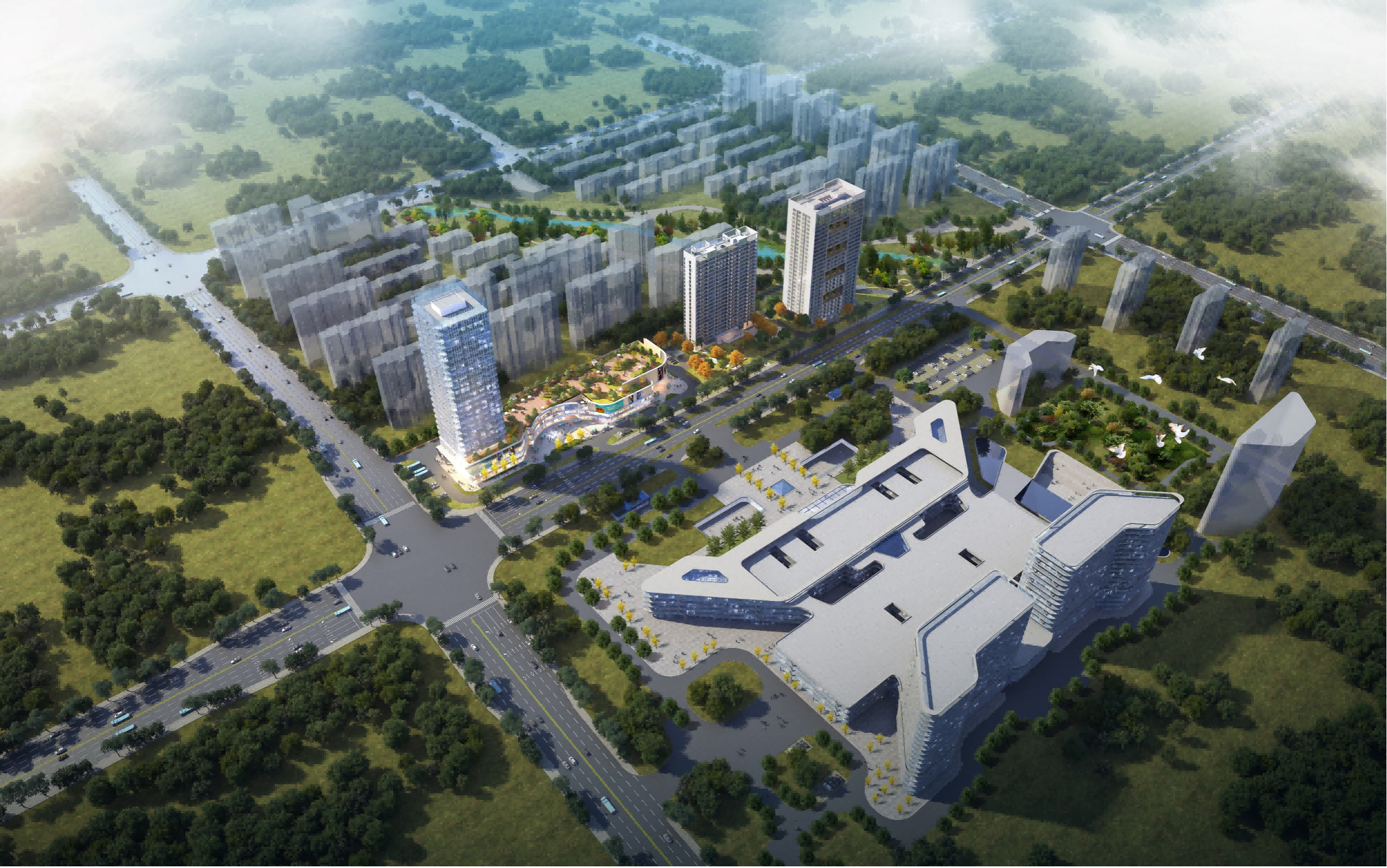 項目整體定位明確,1#棟作為商務(wù)寫字樓適合3T產(chǎn)業(yè)總部辦公;2#棟作為商業(yè)配套適合引入大型商超、百貨、連鎖餐飲等商業(yè)綜合體;3#棟、4#棟為高端公寓,既適合企業(yè)精英人才拎包入住,也適合主題酒店、月子中心、高端護理中心等健康產(chǎn)業(yè)機構(gòu)入駐。