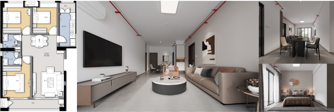3#棟:服務(wù)型公寓,地上建筑面積15996㎡,高度64.2m,地上19層,層高3.3m,共108間,兩梯三戶,套內(nèi)面積90—100㎡左右,全部區(qū)域精裝交付。