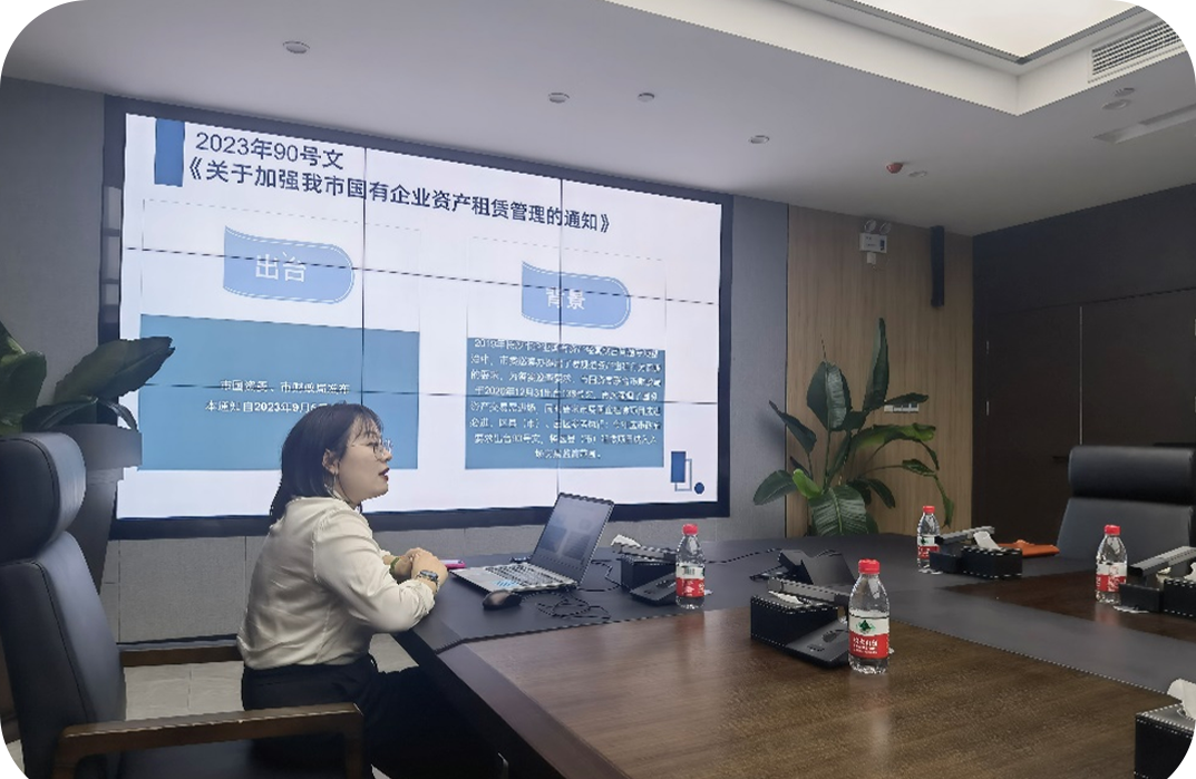 會上,陳美靜對長沙聯(lián)交所一行的到來表示熱烈歡迎并介紹了此次的參會人員。嚴愛萍就此次目的和公司情況進行了介紹,特別提出“依法合規(guī),簡便流程,定制方案,管家服務”十六字服務方針。梁文嘉就業(yè)務開展情況、團隊成員做了介紹。 交易服務部負責人及業(yè)務骨干圍繞《關于加強我市國有企業(yè)資產租賃管理的通知》(長國資產權〔2023〕90號)等文件,詳細介紹了文件出臺背景,并對資產租賃范圍、審批決策等要點進行了分享,對資產租賃交易過程中涉及的審批環(huán)節(jié)、所需資料等事項進行了交流,解答了資產租賃公開招租過程中經常遇到的問題,以實際案例,分析了交易過程中的要點難點,為確保國有資產交易公開透明、依法依規(guī)、有效規(guī)避風險等提供了參考路徑。